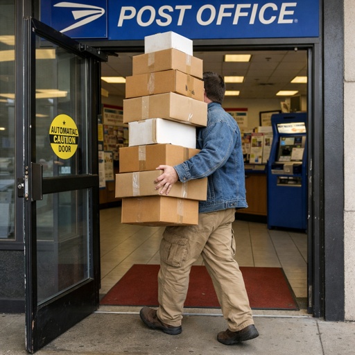 Government in Motion: A dedicated worker handling logistics at a U.S. Post Office, highlighting the millions of federal employees who maintain the nation's critical infrastructure and services.